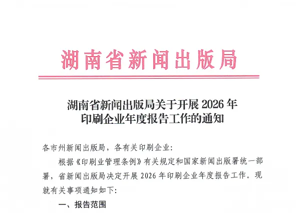 湖南省新闻出版局关于开展2026年 印刷企业年度报告工作的通知